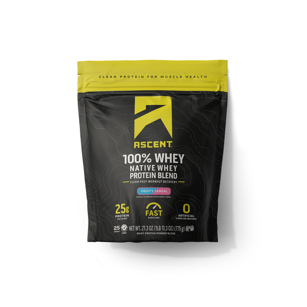 Ascent Fruity Cereal Whey Protein makes the perfect post-workout drink for muscle repair and recovery - just add water! This great-tasting fruity cereal whey protein also contains: