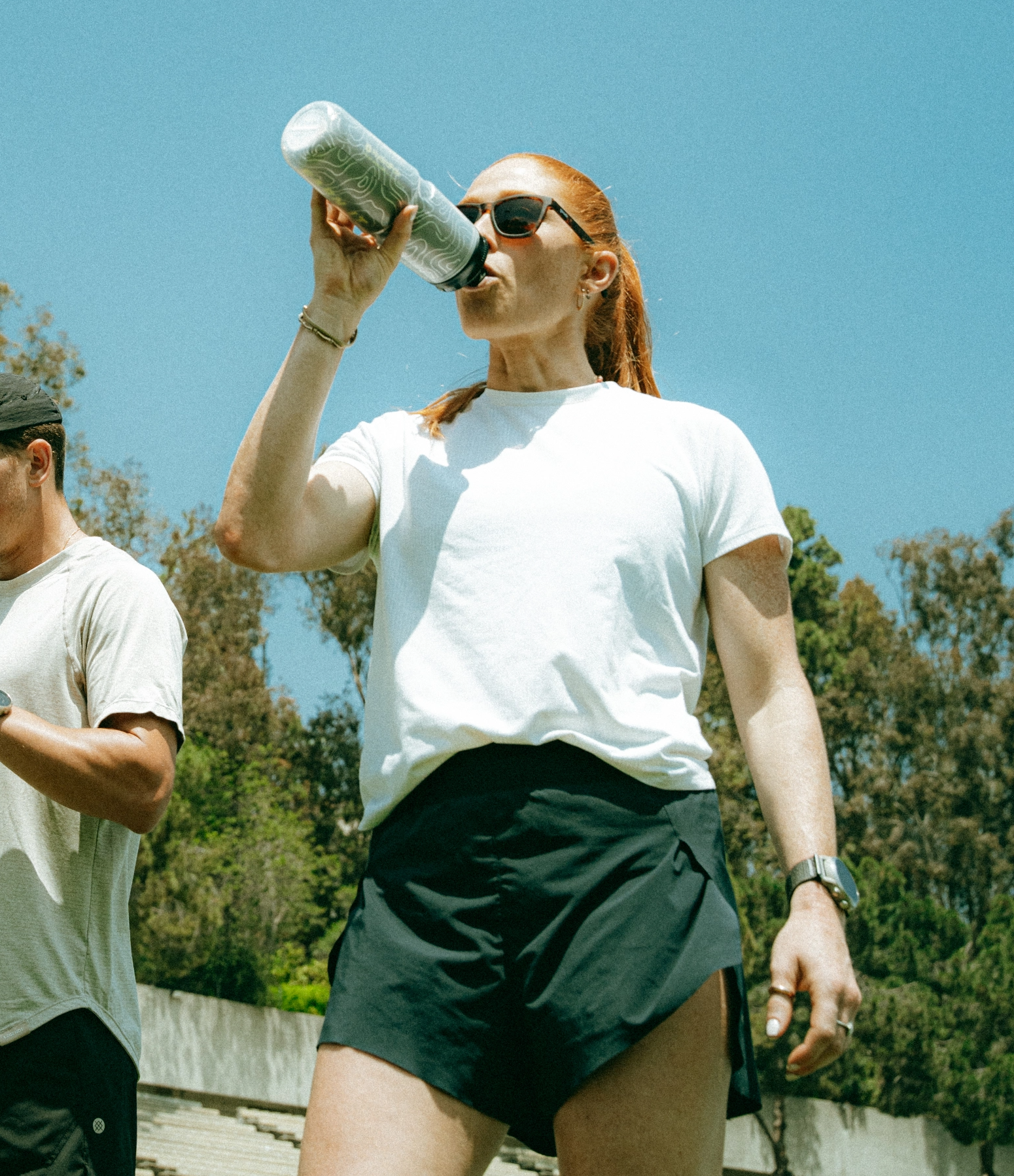 Athlete drinking from blender bottle